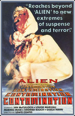 A NEW PLAGUE ON EARTH WILL COME FROM THE STARS !! THE GOLOB THE HUMANOID TRIBUTE PAGE TO THE 1980 SPAGHETTI SCI-FI SPLATTERFEST ALIEN CONTAMINATION ( aka TOXIC SPAWN ) DIRECTED BY LUIGI COZZI ( LEWIS COATES ) STARRING IAN McCULLOCH, LOUISE MARLEAU AND MARINO MASE THE INTERNET MOVIE DATABASE PAGE YOU CAN FEEL THEM IN YOUR BLOOD !! |