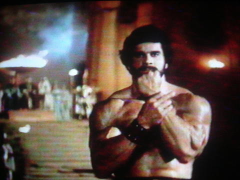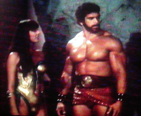 Golob the Humanoid's HERCULES Tribute Page Spaghetti sword and sorcery starring LOU FERRIGNO and SYBIL DANNING extra special effects by Humanoid ARMANDO VALCAUDA Directed by Starcrasher Luigi Cozz Antiquity and the future blend together in a spectacular story of titanic epic adventure ! HERCULES - for his enemies, the sword ! for his princess, devotion ! Hercules the mighty, descended from the Heavens, half-god and half-mortal, unleashed against the forces of evil as he quests to find the woman he loves in this epic odyssey of the gods |