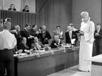 | "Respectfully submitted for your perusal --- a Kanamit. Height: a little over nine feet. Weight: in the neighborhood of three hundred and fifty pounds. Origin: unknown. Motives? Therein hangs the tale, for in just a moment we're going to ask you to shake hands, figuratively, with a Christopher Columbus from another galaxy and another time. This is the Twilight Zone." |