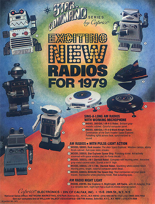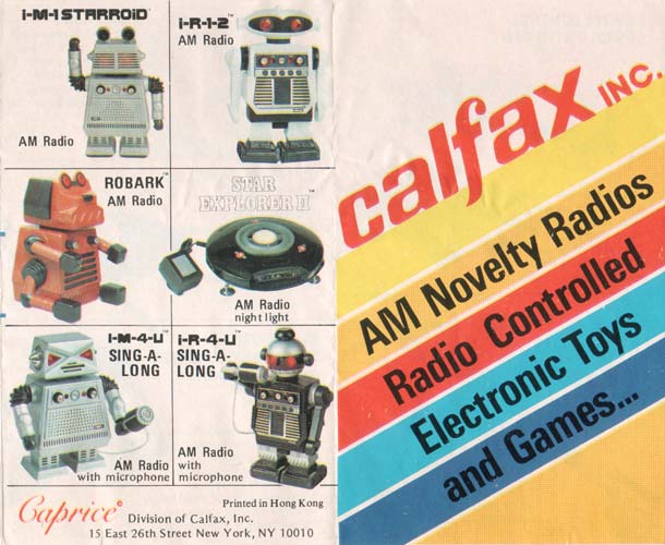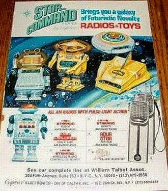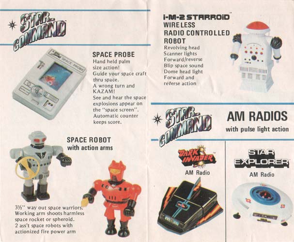 Tomland's Starroids were marketed internationally by Calfax inc. , and were incorporated into that companys toy range under the 'Star Command' banner, a late 1970s line-up that also included Caprice Electronics assortment of outer-space oddities....  |