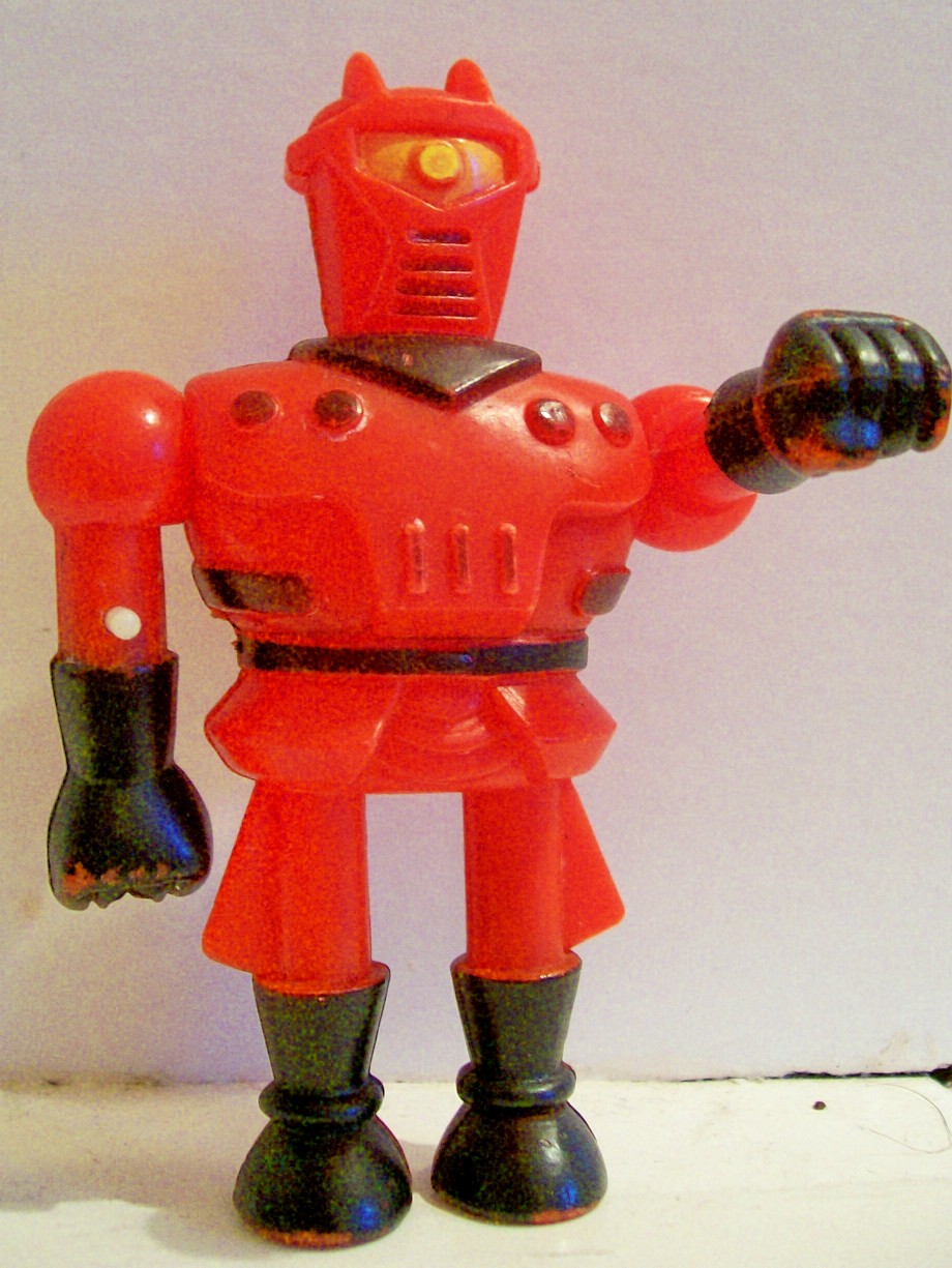 Released by Tomland in 1978 to compliment the Starroid Raiders action figure line, the Space Robot featured a spring loaded missile firing mechanism, and shares some design similarities with the Yugon character (below) A second robotic version, this time in metallic grey, was also released to terrorise toyboxs throughout the world... |