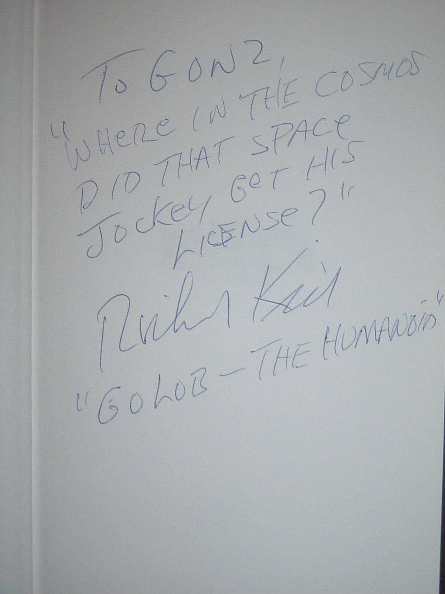 Signed hardback edition of Making it BIG in the movies, the autobiography of Richard Kiel 'To Gonz, "Where in the cosmos did that space jockey get his license?" Richard Kiel "Golob the Humanoid" Treasured, and one of a kind.... |
