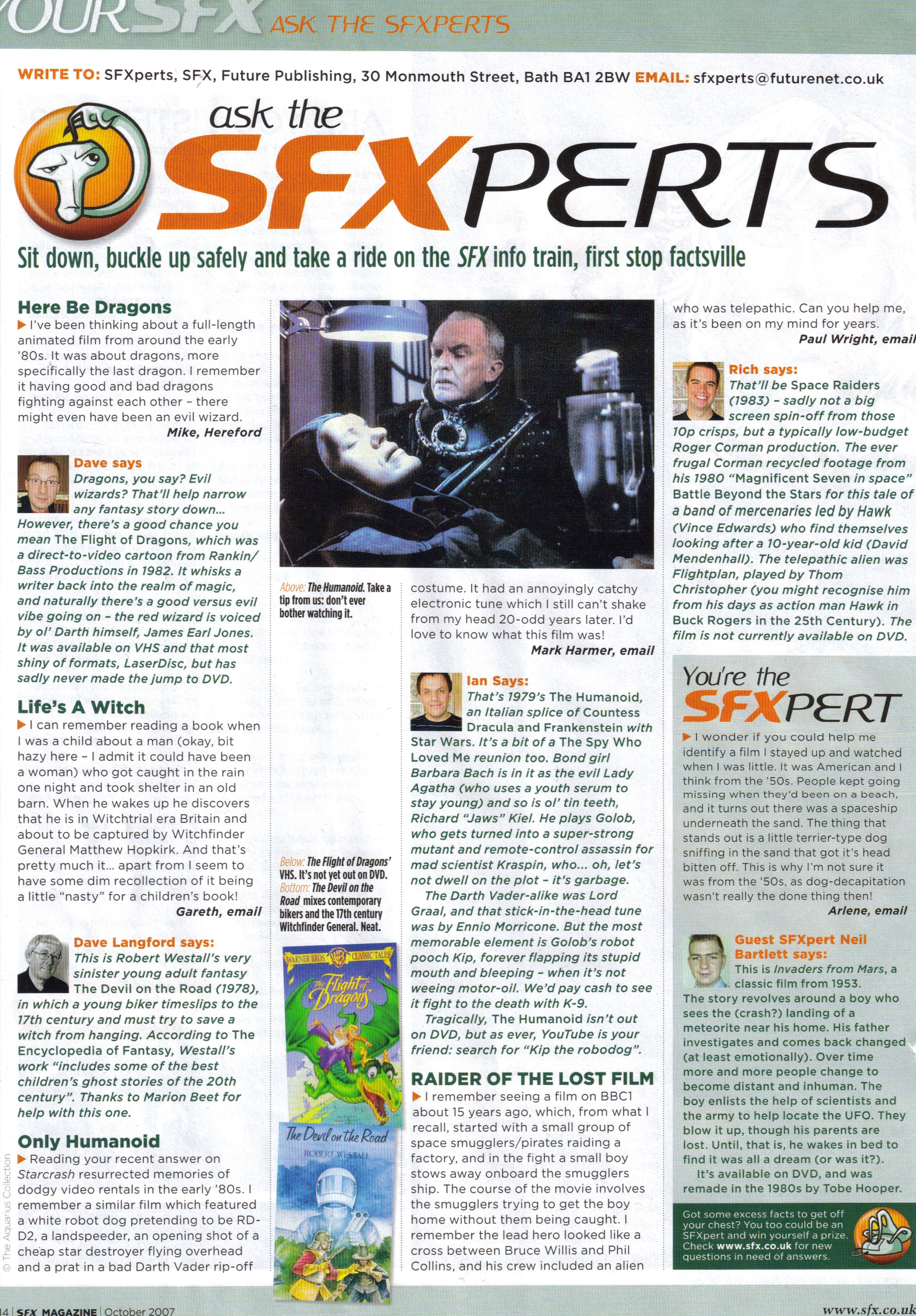 | *** UPDATES *** The Evolution of The Humanoid on the net.... click the underlined links for features. * SPECIAL OFFER * Hand-signed personalised Humanoid autographs now available in conjunction with the Richard Kiel Fanclub. Click HERE for details EXCLUSIVE * HITTIN' THE ALPHA WAVE PILLS ! LIMITED EDITION HUMANOID BOOK NOW ON SALE !! click here for details September 14 2010 * Launch of Curved Space - The Adventures of Stella Star The ULTIMATE spaghetti sci-fi story collection !!! May 20 2010 * New hi-res Shusei Nagaoika artwork added to the Humanoid poster artist page Join SPACE JOCKEYS - The Humanoid FACEBOOK GROUP !!! May 15 - NEW FOR 2010 Limited special-edition cd soundtrack release Brand new vintage pix image gallery - seventeen new black& white promo shots Humanoid newspaper advertisements page February 28 2009 * 2 new original promo pix added to the vintage gallery, obtained from the late Forrest J Ackerman. Details of The Humanoid poster artist revealed ! Now on sale - limited editon Humanoid storybook ! click here for details September 14 2008 * Inter-planetary pop pickers should delight in the news that US synthpop masters Ganymede, creators of The Humanoid's very own pop song, have their latest sci-fi tinged album in the shops.To listen, click HERE, then check their official website to order HERE. Tell them Golob sent you... New Humanoid-esque art added to the Drew Struzan page. August 2008 * Major new site addition.. THE COSMIC CLASSICS !!! July 5 2008 * New vintage promo picture gallery opened.. old favourites plus brand new photo scans May 25 2008 *** GOLOBVISION ! *** Click here to watch the entire Humanoid movie at YouTube.com February 7 2008 * Vintage Heroes of the Spaceways book review, featuring Golob the Humanoid. February 4 2008 * Original 70's promo picture scans added to the misc. gallery December 26 2007 * Expanded the Leonard Mann Autograph Collection November 4 2007 * Golob & The Gonz @ The Outer Rim.... The inevitable golobthehumanoid.com STAR WARS Page ! October 6 2007 * New file upload - 4mb UK SFX Magazine scan, featuring The Humanoid. More vintage promo photos uploaded to misc. Incredible new Agatha fan art, by Robinski. August 3 2007 * New black & white photography added to the misc gallery July 14 2007 * Added the Kampf um die 5. Galaxies German pressbook pages July 9 2007 * Added the YouTube.com slideshows page, with original soundtracks. Uploaded vintage Nurek promotional photo to the misc. gallery. June 23 20007 * Put up the complete UK lobby card gallery April 21 2007 *** The Ultimate Umanoide Update ! *** The Golob's Graphics Gallery.. the complete Humanoid movie story, retold in digitally enhanced cartoon graphic form. April 17 2007 * Opened the "L'Umanoide Illumulet" Image Gallery - Brand new digitech reworks of classic Golob Graphics !! March 31 2007 * Added the Columbia Pictures home video promo poster page March 9 2007 * Uploaded three vintage promotional photos to the miscellaneous images gallery February 28 2007 * Uploaded prized Barbara Bach autographed picture. With thanks to the Queen of the Nurek herself ! January 27 2007 * Impressive new 'Space Claw' starship artwork added to the fan art gallery January 23 2007 * Two new Corinne Clery promo photos added to the misc image gallery January 11 2007 * Added excellent vintage Titanus Films promo artwork to the italian posters section January 05 2007 * Uploaded three stunning original promo photographs to the miscellaneous images gallery October 06 2006 *** Star Storming Update *** Massive new image gallery - The complete collection of Italian-issued photobusta lobby card atwork Excellent new fan art gallery...Starcrash vs The Humanoid ! October 02 2006 * Happy First Birthday www.golobthehumanoid.com The Humanoid Highlights Page September 17 2006 * The Humanoid in print : Reviews Page 4 September 6 2006 * Added Reviews Page 2 and the Monthly Film Bulletin scan September 3 2006 * Exclusive Leonard Mann signed autographs available!! September 1 2006 * Extra Special Announcement * Coming Soon..Compromising Hyperspace * Starcrash the Book!! Behind the scenes expose of the ultimate spaghetti sci-fi spectaculars, featuring contributions from Golob The Humanoid August 27 2006 * Focus on the movie extras.. Metropolis, the Light Side... & Nurek, the Dark Side Put up the Humanoid community discussion forum - meet & greet fellow fans! Put up the L'Umanoide My Space profile page..come and Greet Golob !! July 3 2006 * Added the L'Umanoide 4-sheet promo poster page. Put up the Drew Struzan Sketch Page. Updated The Lady Agatha Glamour Gallery. June 18 2006 * SEXY Sci-fi.. The Lady Agatha Glamour Gallery! April 29 2006 * Added the Arthur Kennedy Autograph Page April 26 2006 * Updated the miscellaneous gallery with vhs and dvd covers, promotional photographs and concept art scans. Put up stunning new fan art. April 23 2006 * Upgraded the Models Gallery with hi-resolution shots April 22 2006 * Humanoid v Star Wars - The Comparisons Page April 9 2006 * Put up the Humanoid Hardware Page April 7 2006 * Cute new manga-style Robodog artwork , with sound :) March 22 2006 * Discovered the mega rare Italian-issue L'Umanoide 2-sheet poster March 19 2006 * Updated the magazine section with hi-res scans March 4 2006 * Extra special update * Meeting The Humanoid * Swedish sci-fi convention report Feb 6 2006 - Nice new Robodog model photo added. Opened the Shrine to The Humanoid's twin spaghetti sci-fi film, Starcrash Jan 26 2006 - Added the screenplay transcription pages Jan 20 2006 - 'At the Hyper-drive-in' ... Golob's movies page Dec 17 2005 - Added Fangoria articles to the Magazine section. Opened the Miscellaneous image gallery. Created The Many Faces of Richard Kiel Section, featuring tribute pages to The Humanoid star's many other movie roles. Dec 11 2005 - Put up the Human Duplicators page dedicated to Richard Kiel's Dr Kolos character in the 1965 sci fi epic.*Update*Jan 13 2006 - Added the Human Duplicators media p